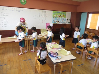お盆の連休が終わり、久しぶりの登園となりました。本日もよく晴れて、ほんと暑い一日でしたが、みんなは元気に登園していましたね。久しぶりにお友達に会えて嬉しそうでしたよ!さてさて、今日は給食の時間におじゃましました。 今日の […]